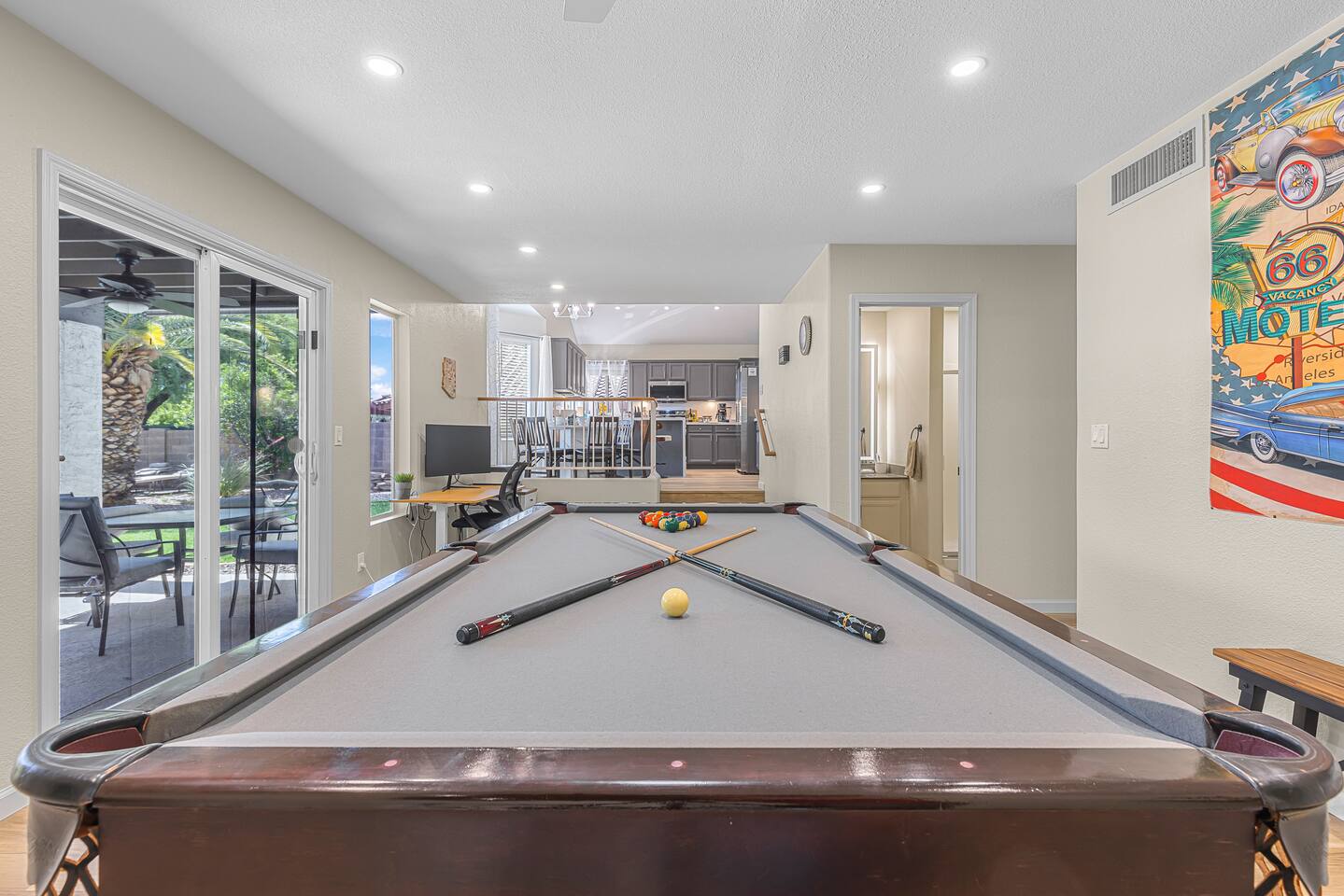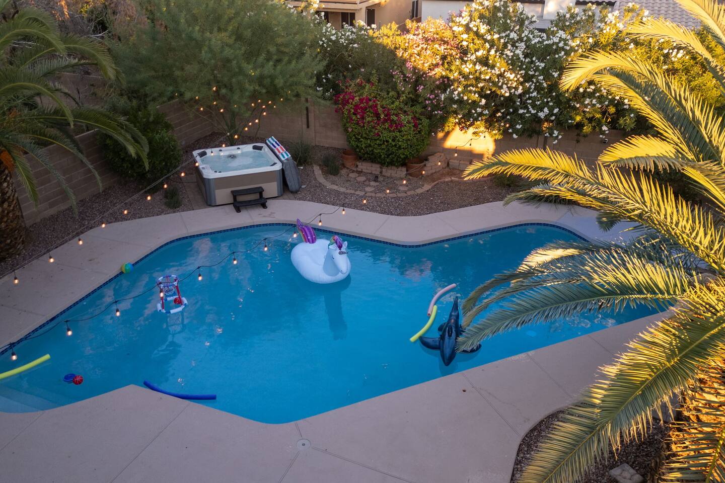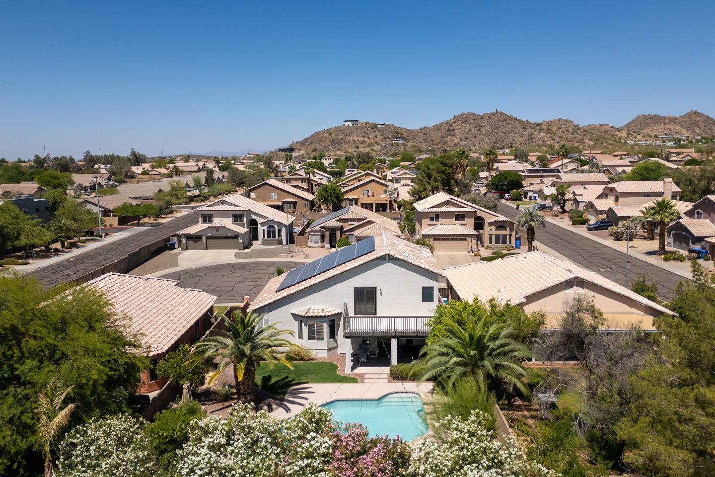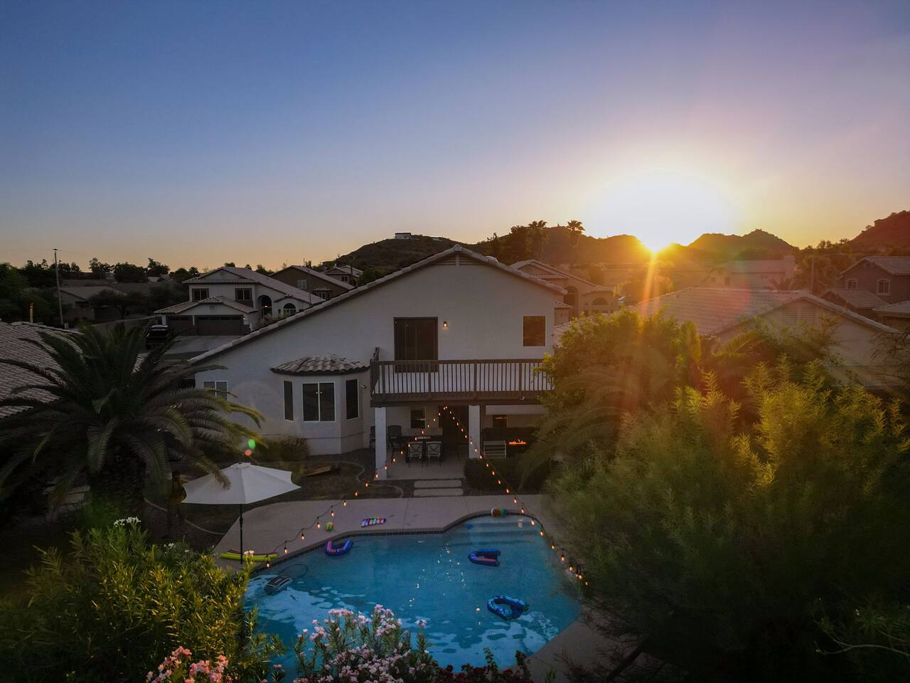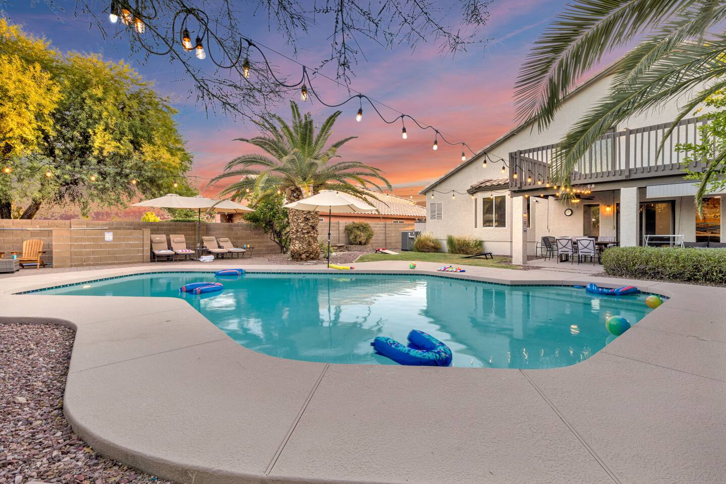 Welcome to your Desert Ridge escape! Dive into the private pool, unwind in the hot tub, and gather around the glowing fire pit after a day on the links. 4 spacious bedrooms • 3 full baths Chef’s kitchen & open living area Board games, billiards, and BBQ Minutes to Desert Ridge Marketplace, Mayo Clinic, and TPC golf. Sky Harbor Airport is a 25-min drive. House rules: No parties, quiet after 10 pm, registered guests only.